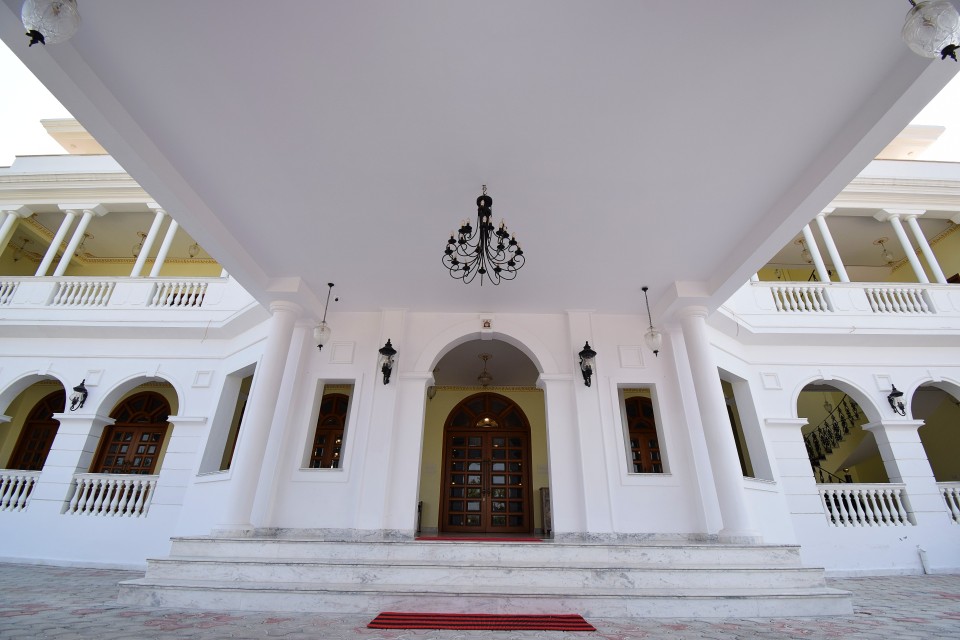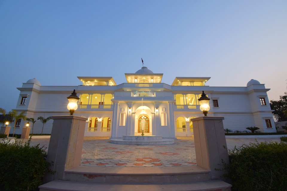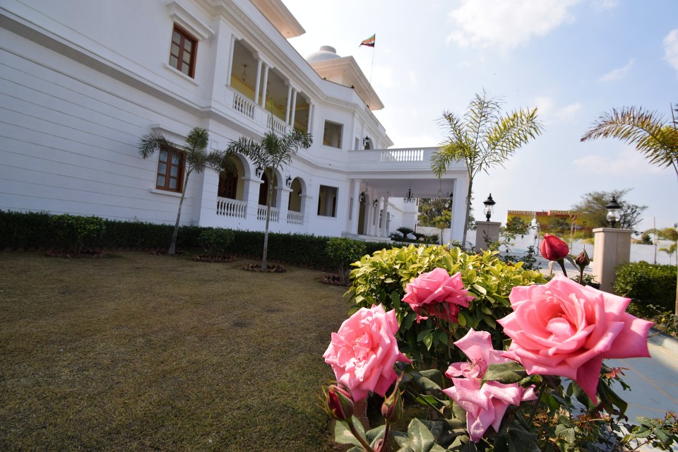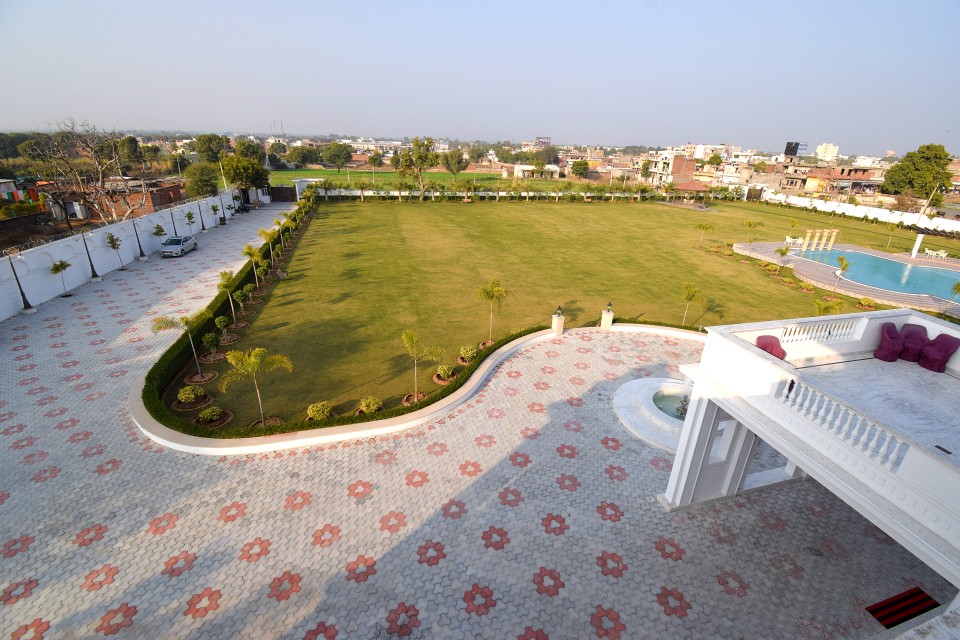 Special MomentsThe expansive lawns at Umaid Farm Resort provide a picturesque setting for weddings, events, and celebrations. Surrounded by lush greenery and perfectly manicured grass, the space exudes elegance and tranquility. The vast open area, complemented by the regal white facade of the resort, offers a breathtaking backdrop for any occasion. Whether it’s a grand wedding, an intimate gathering, or a corporate event, the lawns can be customized to suit every theme and requirement. The serene ambiance, dotted with palm trees and charming seating arrangements, creates a perfect blend of natural beauty and sophistication. With ample space to accommodate large crowds, the lawns ensure a seamless and memorable experience, making your special moments truly unforgettable at Umaid Farm Resort.